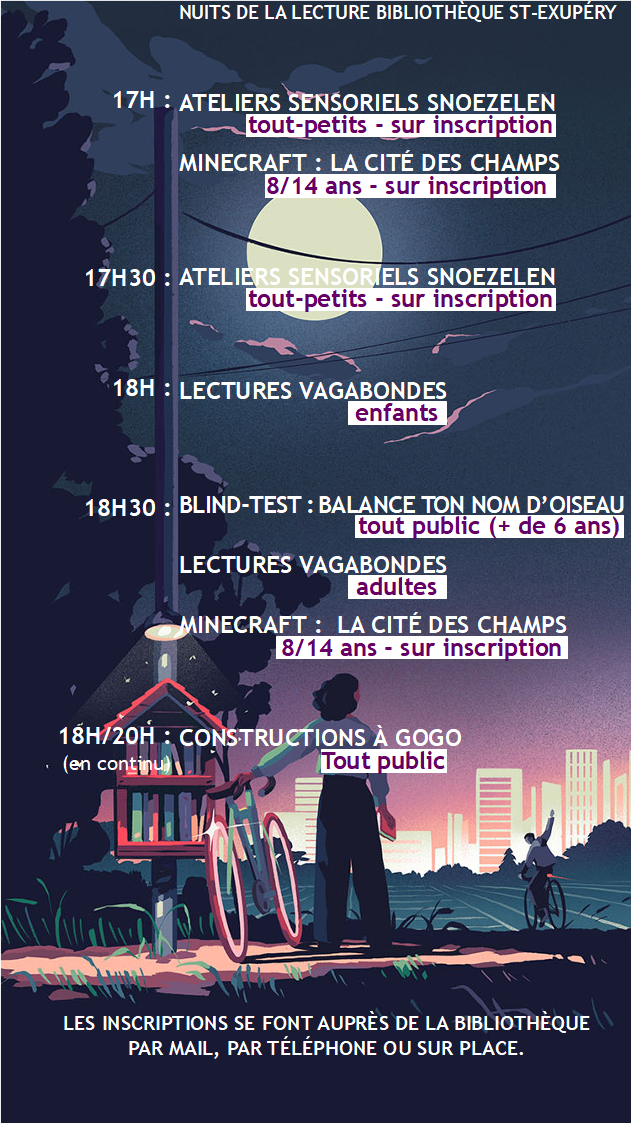 Rendez-vous national annuel de tous les lieux de lecture. Entrez à la bibliothèque St-Exupéry à...